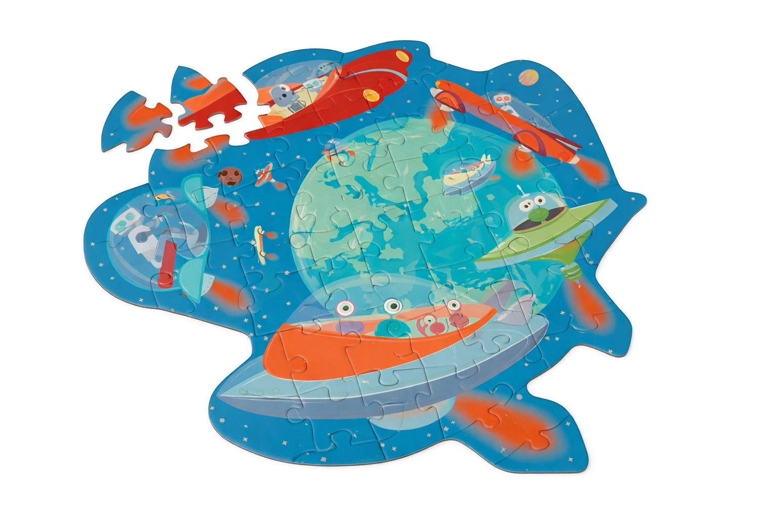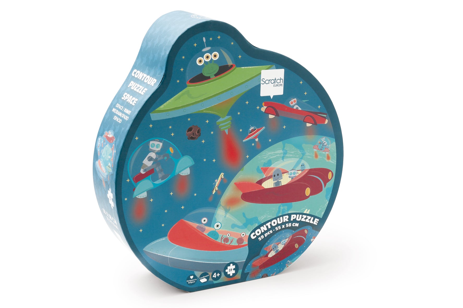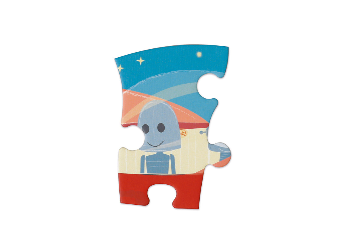 تتميز هذه الأحجية الذكية المكونة من 59 قطعة، ذات الخطوط الفريدة والموضحة بشكل حيوي، بأسطول مضحك من الروبوتات والأجانب الذين ينطلقون عبر الفضاء ويشقون طريقهم نحو الأرض.