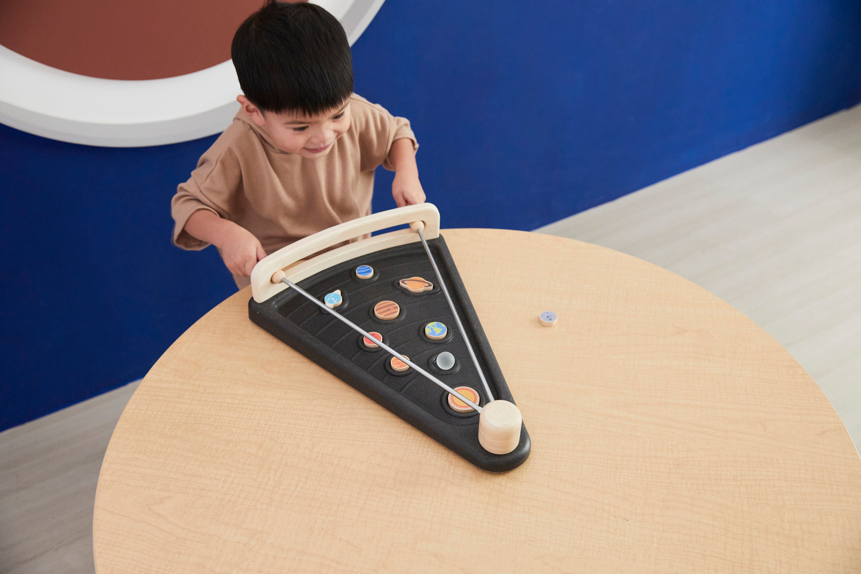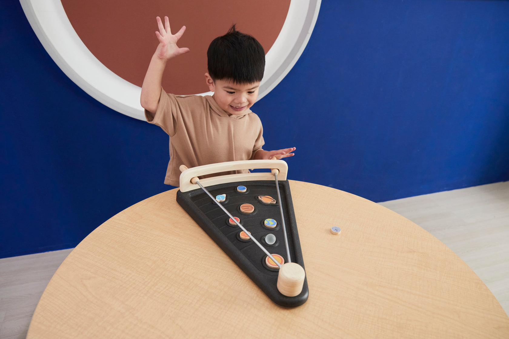تعرف على الجاذبية مع لعبة بلان تويز لاند ذا بلانيت. يتحكم اللاعبون في الرخام على طول القضبان الفولاذية عن طريق إغلاق وتوسيع الفجوة بينهما والتوجيه فوق الكواكب للسماح للرخام بالسقوط في المكان الصحيح. يمكن للاعبين التحكم في سرعة دحرجة الكرات عن طريق ضبط عرض القضبان. يمكن للأطفال تعلم التخطيط والسبب والنتيجة ومهارات حل المشكلات. يمكنك أيضًا استخدام اللوحة كلعبة ألغاز مطابقة عن طريق وضع قطع الكواكب المختلفة في الأماكن الصحيحة. كل قطعة لها رقم على الجانب الآخر كنقطة. تشتمل هذه المجموعة على رخام ولوحة نظام شمسي تتكون من الشمس وكل ما يرتبط بها عن طريق الجاذبية - الكواكب عطارد والزهرة والأرض والمريخ والمشتري وزحل وأورانوس ونبتون.