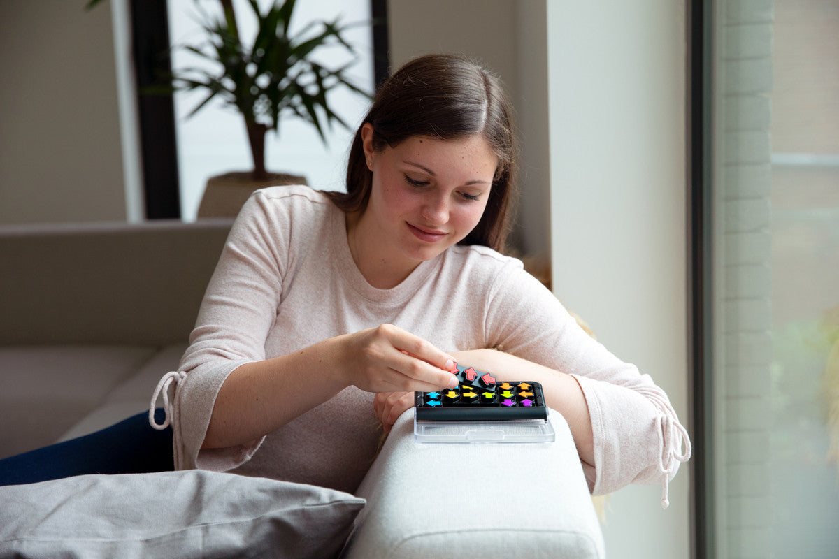 Follow the arrows. Find the solution. IQ Arrows offers a whole new direction… in puzzle games. Can you place all the puzzle pieces on the gameboard and point the arrows as indicated in your challenge? Watch out. When you rotate a puzzle piece, the direction of the arrows will change. IQ Arrows is a unique travel game featuring 120 challenges, from easy to expert.