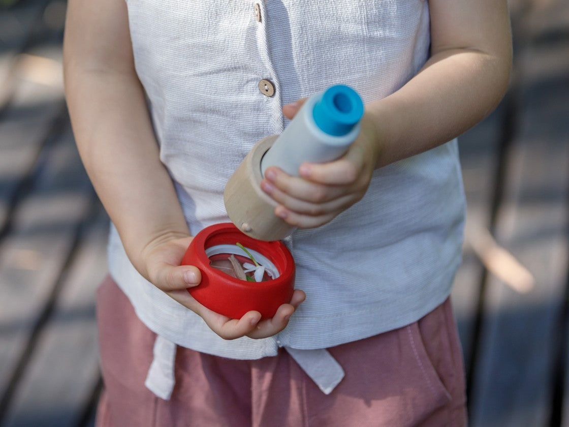 View the world through an artistic lens with the wooden Kaleidoscope. Little ones can put their favorite objects inside and experience a swirling explosion of brilliant colors. They can also explore objects around them and see what they discover through the lens. As educational as it is entertaining, this kaleidoscope fosters creativity, imaginative thinking and curiosity.