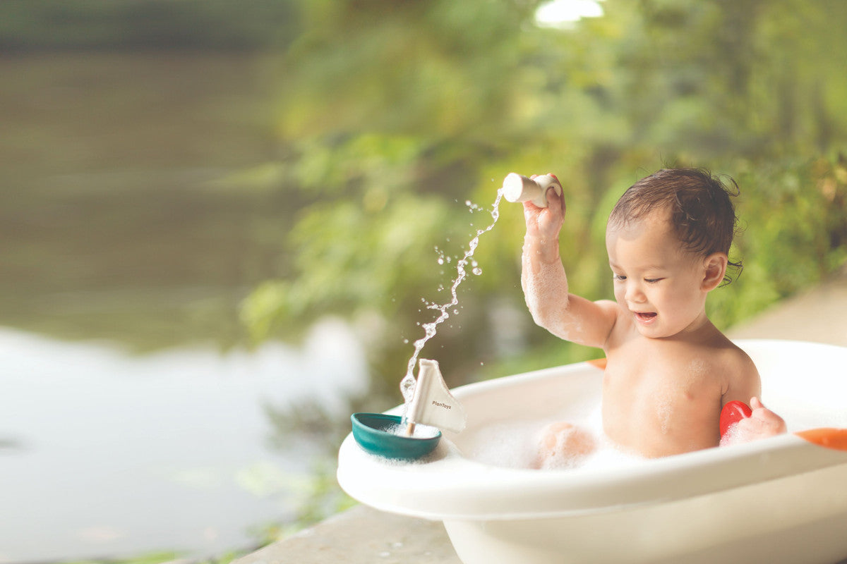PlanToys Sailing Boat — Polar Bear | Wooden Bath Toy
