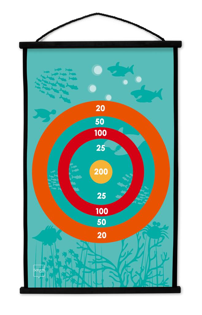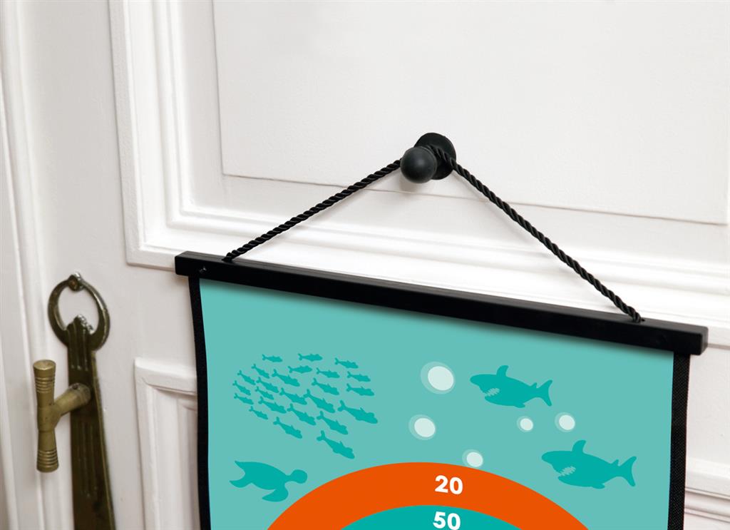 The darts stick firmly to the plastic canvas, and you get double the fun, because the dartboard is printed front and back with lovely drawings. The six rubber darts with their ultra-flexible suction cups are easy for young hands to throw thanks to their size and shape, and what’s more, they are very light in weight too. Completely safe for children to play because the darts have no sharp points. They stick to any smooth surface without leaving a mark. Thanks to the game’s easy hanging system, you can play it almost anywhere. Packaged in a sturdy cardboard box so that the canvas and the six darts can always be stored away in a compact space.
