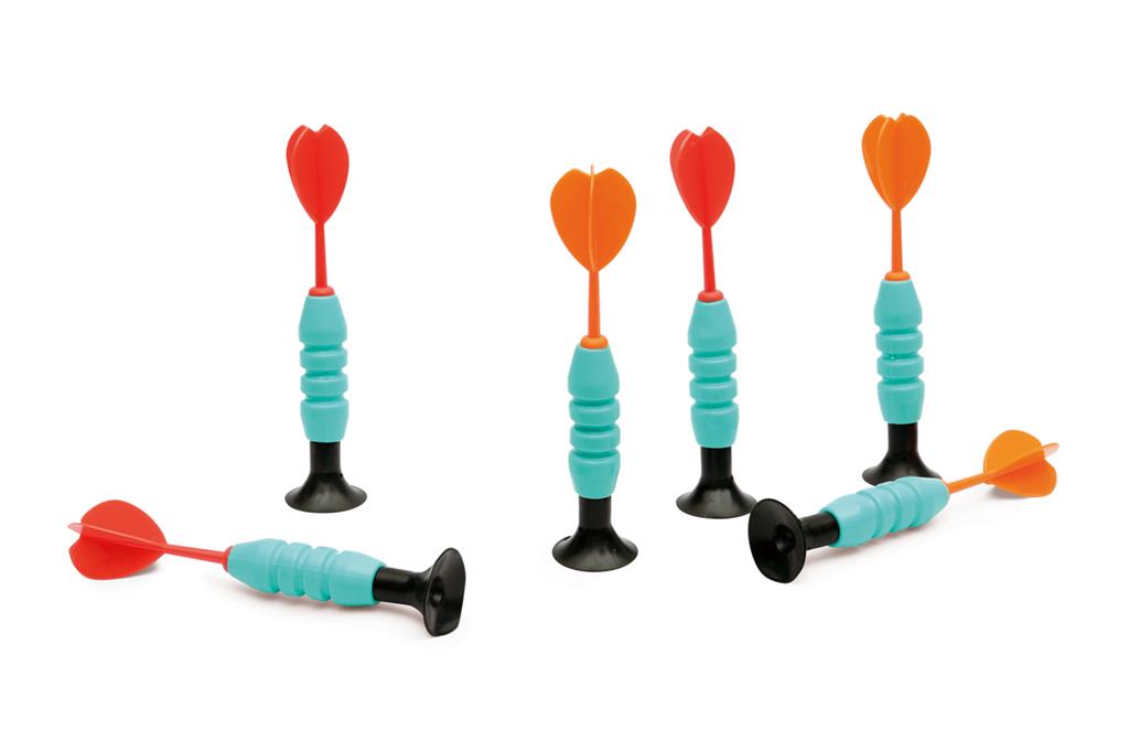 The darts stick firmly to the plastic canvas, and you get double the fun, because the dartboard is printed front and back with lovely drawings. The six rubber darts with their ultra-flexible suction cups are easy for young hands to throw thanks to their size and shape, and what’s more, they are very light in weight too. Completely safe for children to play because the darts have no sharp points. They stick to any smooth surface without leaving a mark. Thanks to the game’s easy hanging system, you can play it almost anywhere. Packaged in a sturdy cardboard box so that the canvas and the six darts can always be stored away in a compact space.