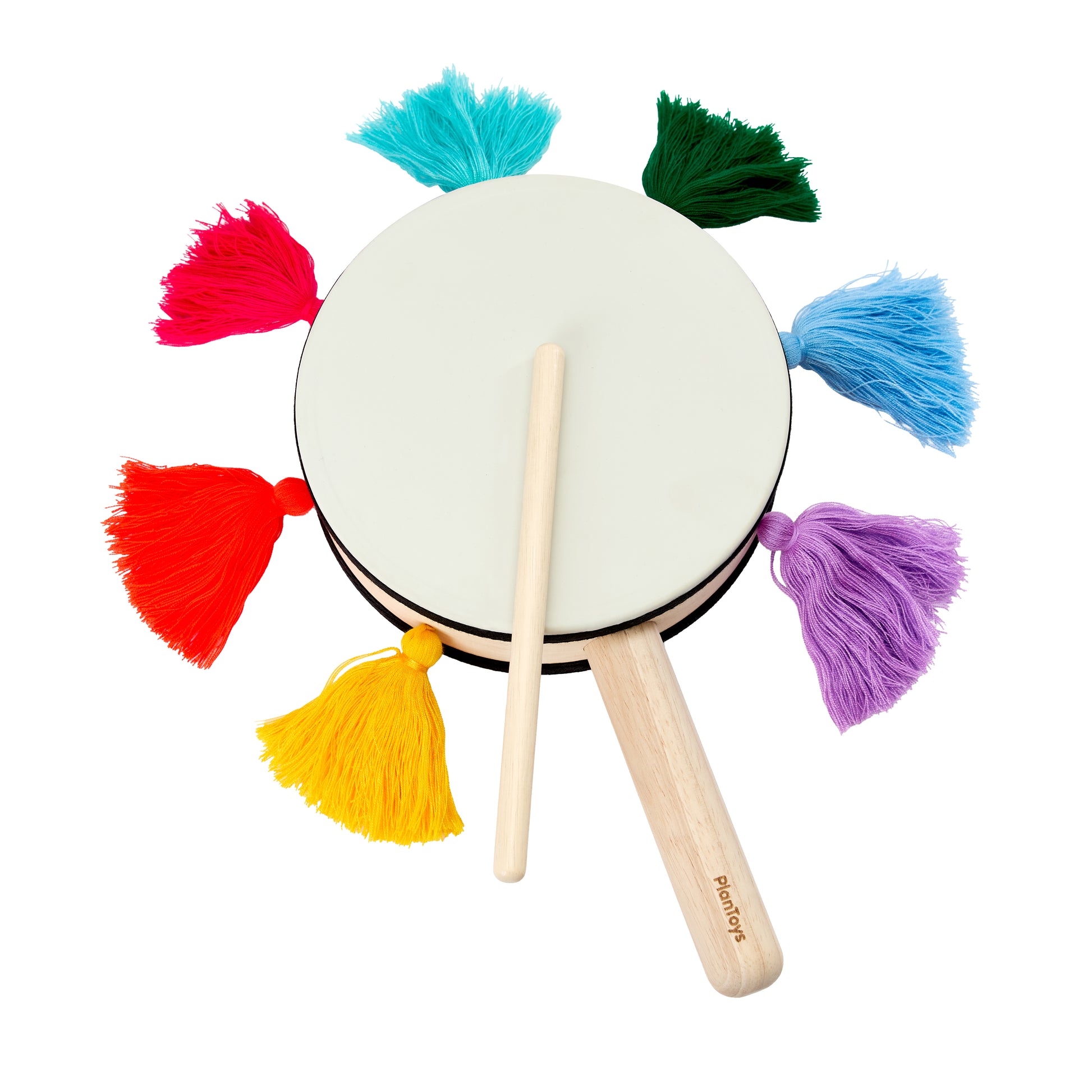لعبة *طبل* الالة الموسيقية المستدامة المصنوعة من خشب معاد تدويره ومطاط طبيعي وألوان طبيعية